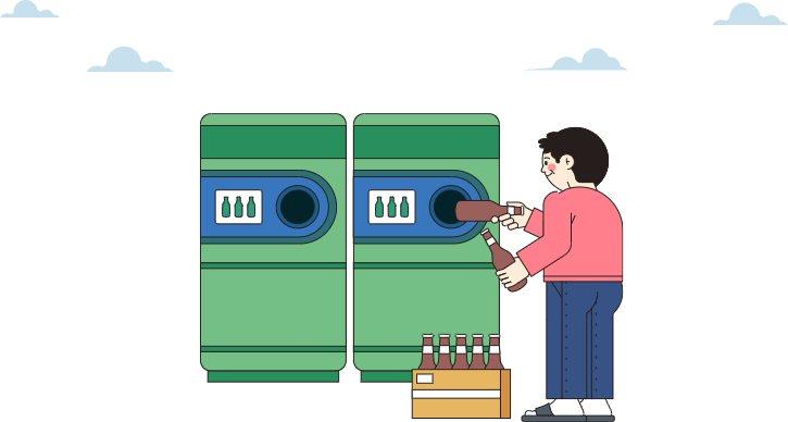 제품을 구매할 때 일정 금액의 보증금을 납부하고, 다 사용한 빈용기를 도·소매점에 반환하면 보증금을 환급받게 됩니다.
